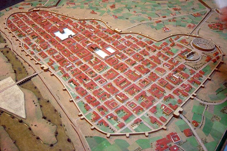 Les colònies romanes acostumaven a tenir una estructura urbana ben planificada, amb carrers organitzats, fòrums, temples i altres edificis públics característics de l’arquitectura romana.