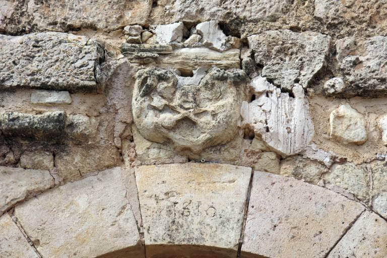 Se abrió una portada en el muro, de arco de medio punto de dovelas de sillería de piedra. Un escudo sobre la clave y la fecha 1810.