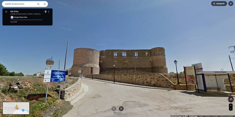 Al intentar una primera reflexión me topé con la imagen del castillo de Google Street View tomada el año 2009. Compararla con la imagen actual me lleva a reflexionar sobre la valoración de la intervención que se ha calificado de postmoderna.