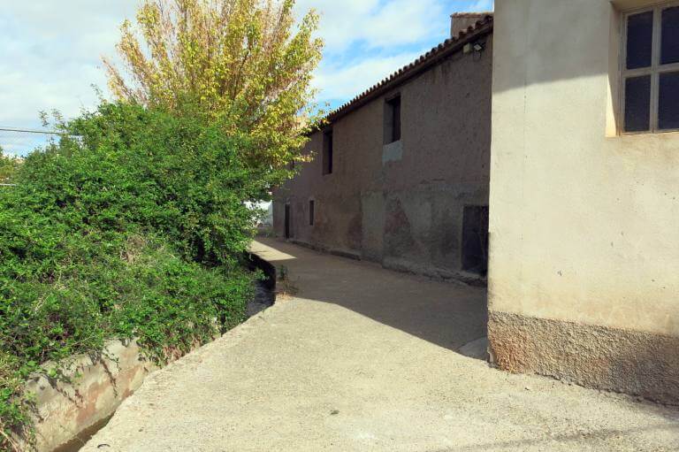Pasada la casa de la Herrería estamos ya fuera del pueblo. A la izquierda un muro cierra el paso hacia la parte posterior del cuadrante sudoeste (entre los portales A y B). Mientras que hacia la derecha un camino de cemento bordea la parte trasera de cuadrante noroeste (entre los portales B y C). La forma rectilínea de los fondos de las casas se reproduce por el exterior, a pesar de que lo que actualmente se ve son ampliaciones respecto al tamaño original.