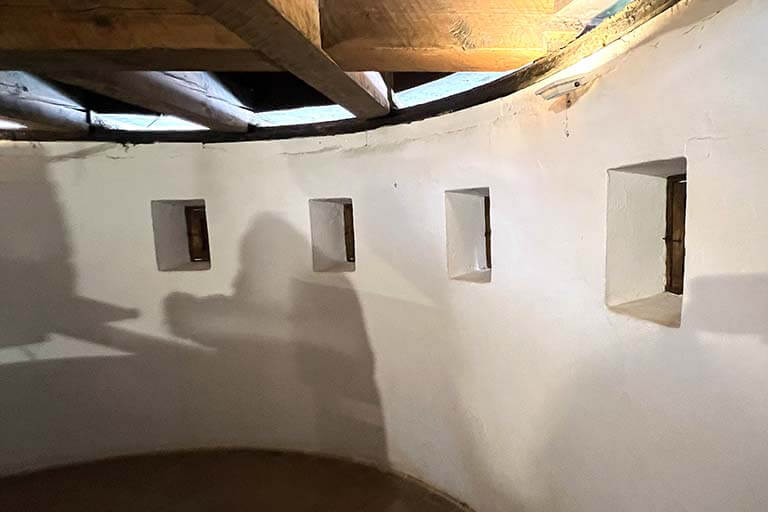 A través de los ventanillos el molinero decidía cuál era el viento dominante en ese momento para, a continuación, proceder a girar la cubierta hasta que las aspas quedasen orientadas contra la dirección de este viento dominante.