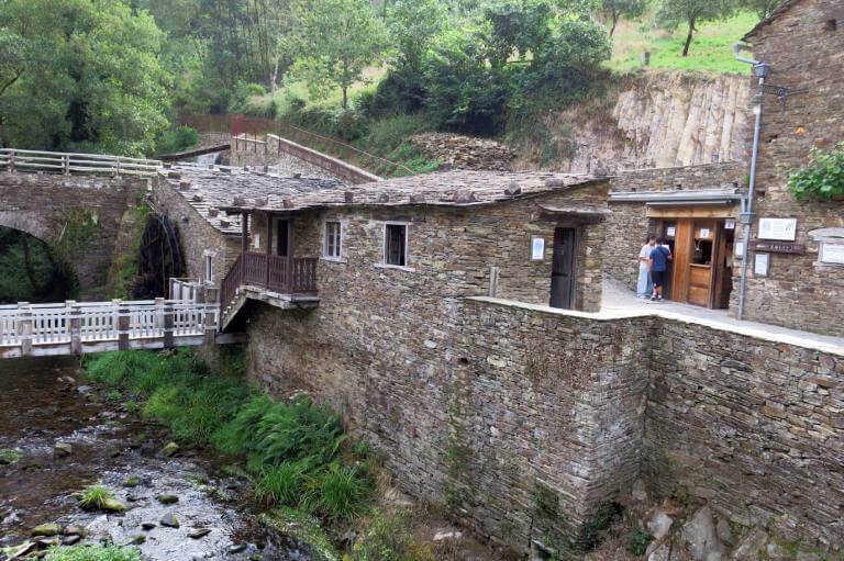 La visita al Museo de Molinos de Mazonovo transcurre por los edificios que formaron el complejo del molino y por el sistema hidráulico exterior que alimentaba los molinos desde la esclusa.