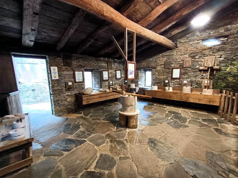A continuación, se pasa al Edificio 2, donde se presenta la evolución histórica de estos molinos. Este edificio fue el que alojó los dos primeros molinos en el margen izquierdo del río Cabreira.