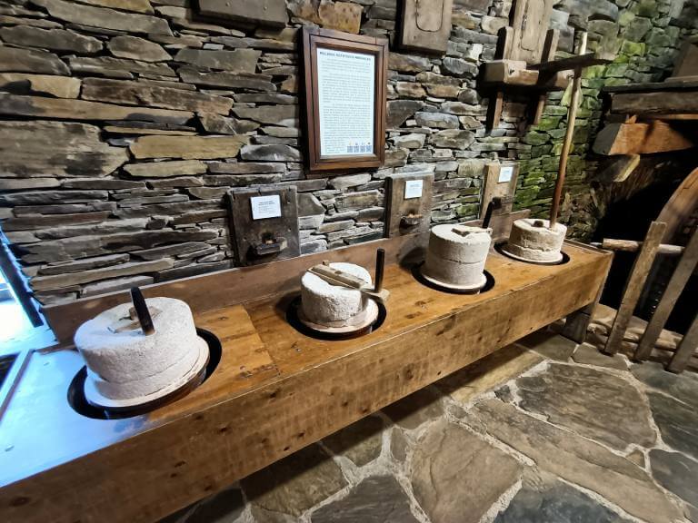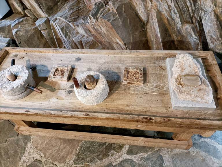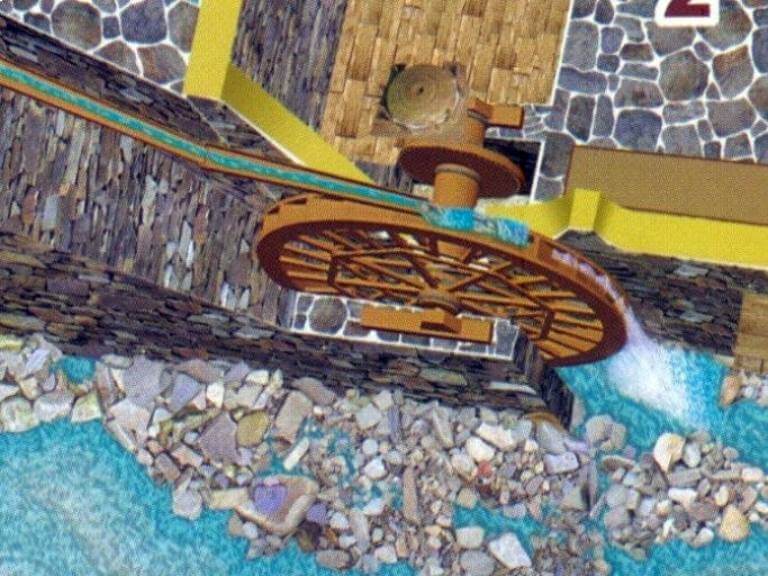 El resultado es un museo de la historia de los molinos de grano movidos por energía animal e hidráulica, desde el Paleolítico Superior (40.000-10.000 a.C.).