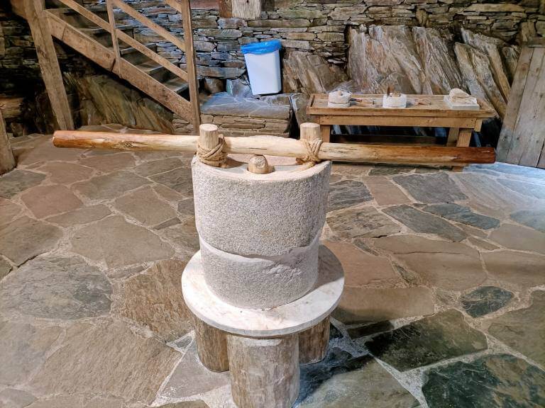El visitante puede accionar con el pie y valorar el esfuerzo necesario para efectuar este tipo de molturación.