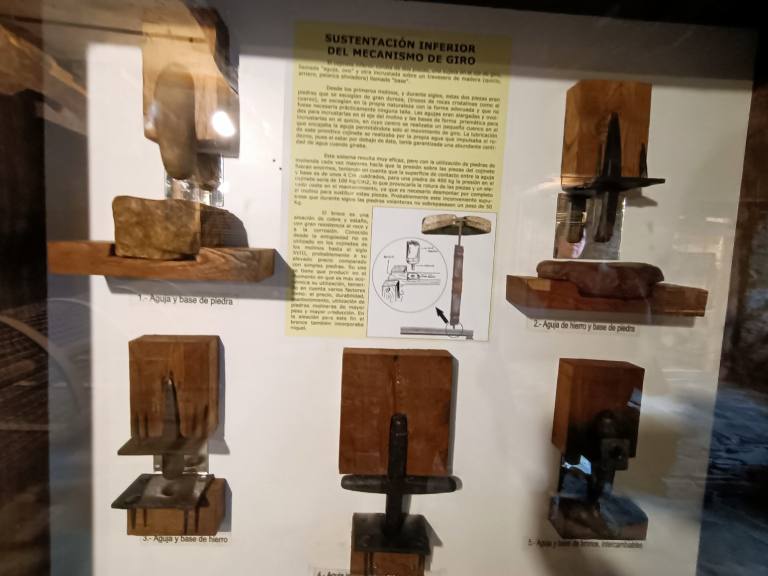 El resto del altillo muestra un despiece de las partes esenciales de un molino y muestras de distintos componentes.